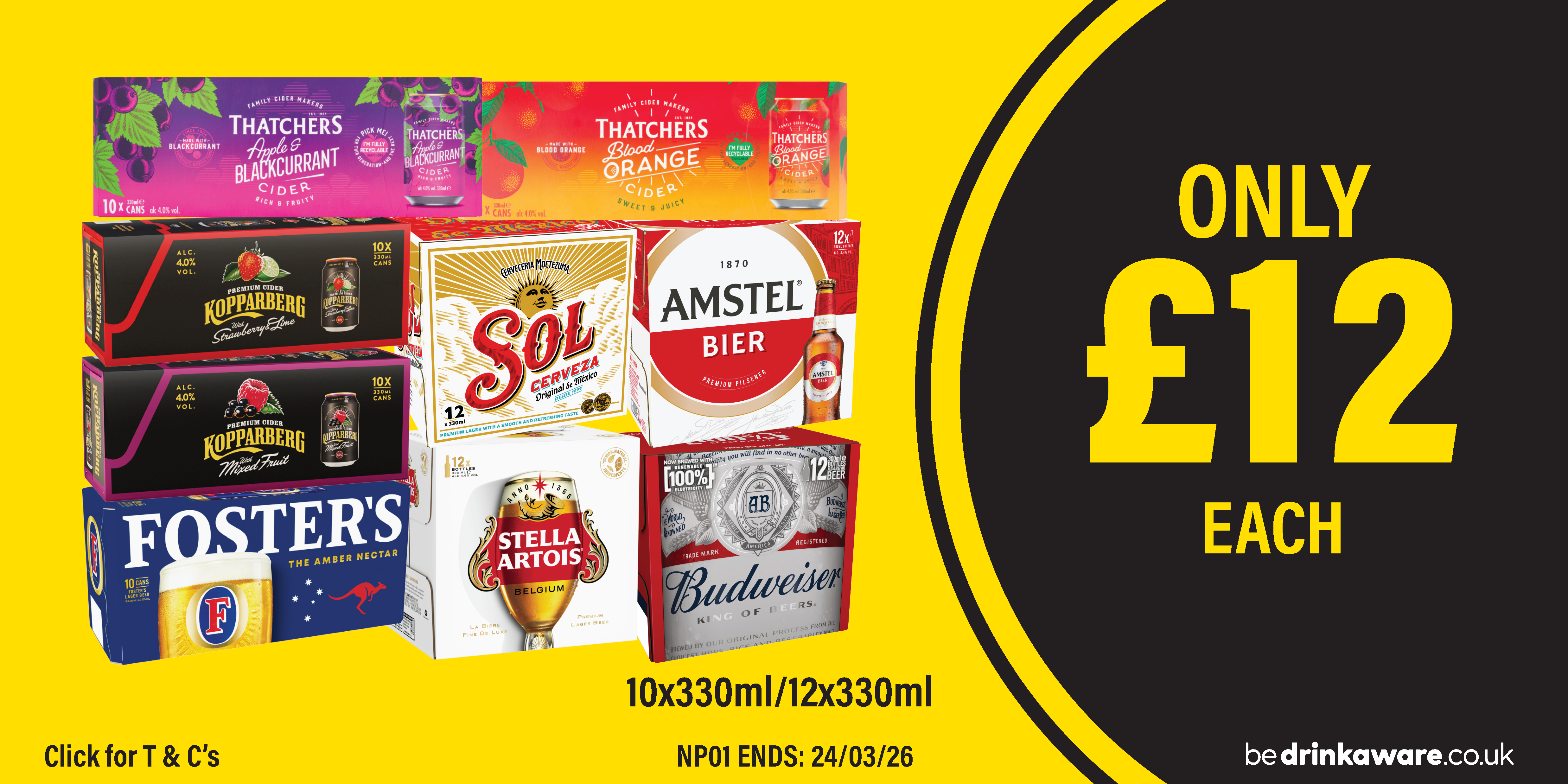 Explore the store's main drink and snack categories, from beer and wine to spirit top ups and everyday convenience extras.